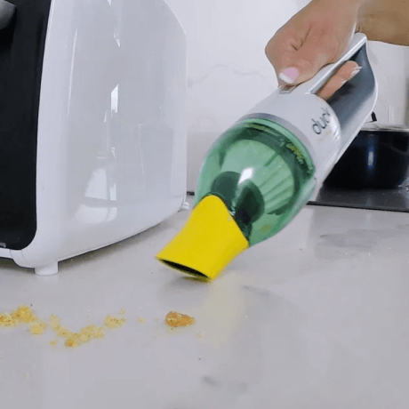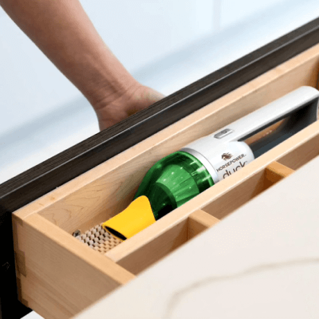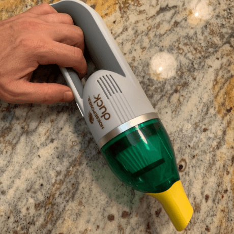 I used to have to drag out this HUGE thing they call a “portable” vacuum cleaner. It’s not portable at all. Now I just keep Horsepower Duck in my drawer and I clean up any mess in a couple of seconds.
